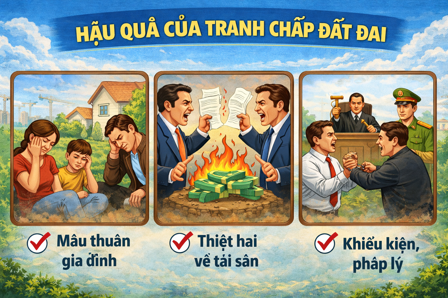 Có thể thấy, tranh chấp đất đai là vấn đề không thể xem nhẹ trong đời sống hiện nay. Việc hiểu rõ nguyên nhân, quy trình và cách phòng tránh tranh chấp đất đai sẽ giúp bạn bảo vệ tài sản và quyền lợi hợp pháp một cách hiệu quả. Chủ động tìm hiểu và chuẩn bị kỹ lưỡng chính là chìa khóa để hạn chế tối đa các rủi ro liên quan đến tranh chấp đất đai.